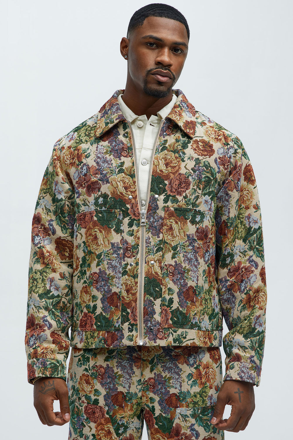 NovaMen Bellevue Floral Tapestry Work Jacket - Green