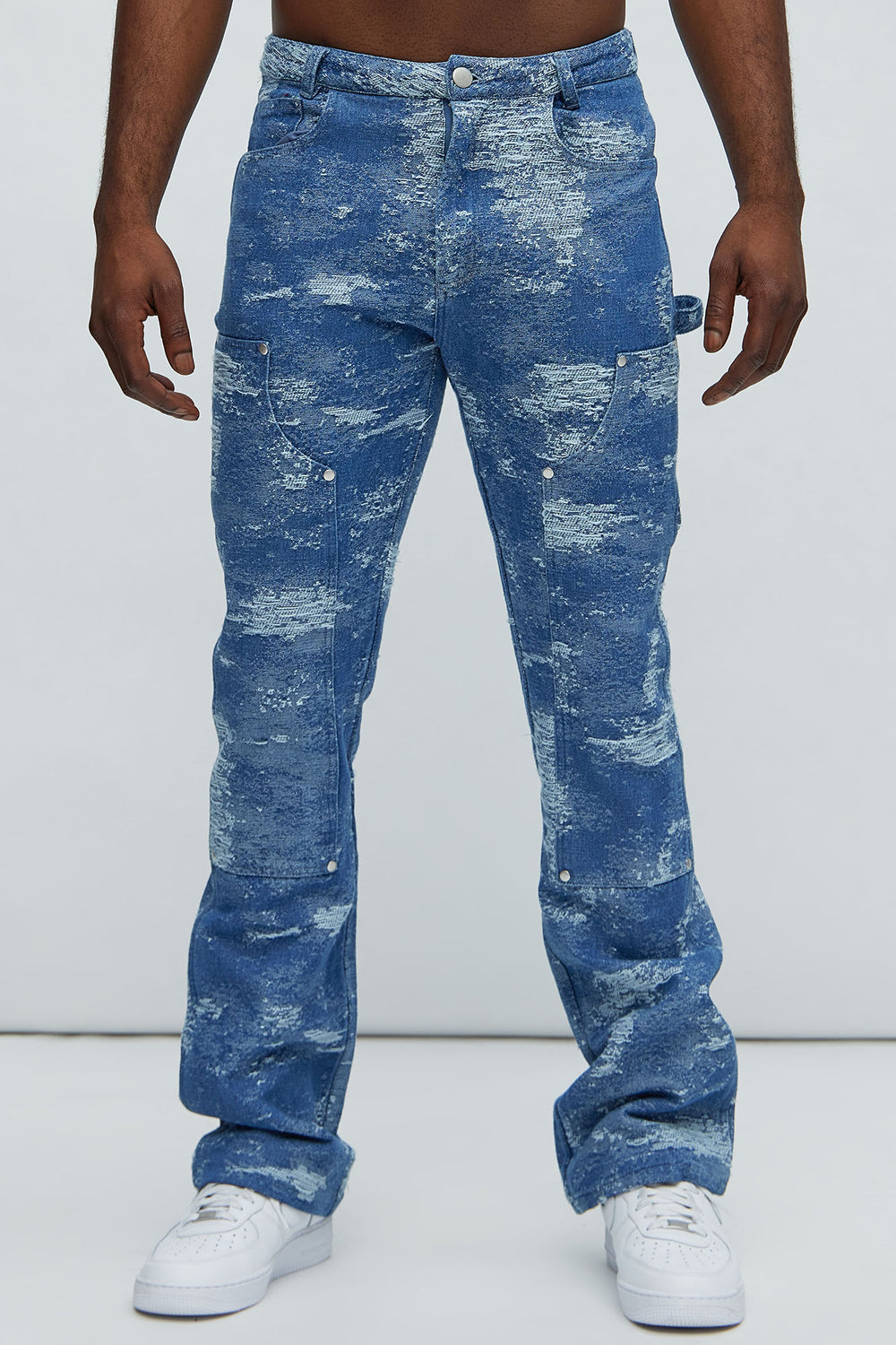 NovaMen Cloud 9 Textured Slim Flare Carpenter Jeans - Light Blue