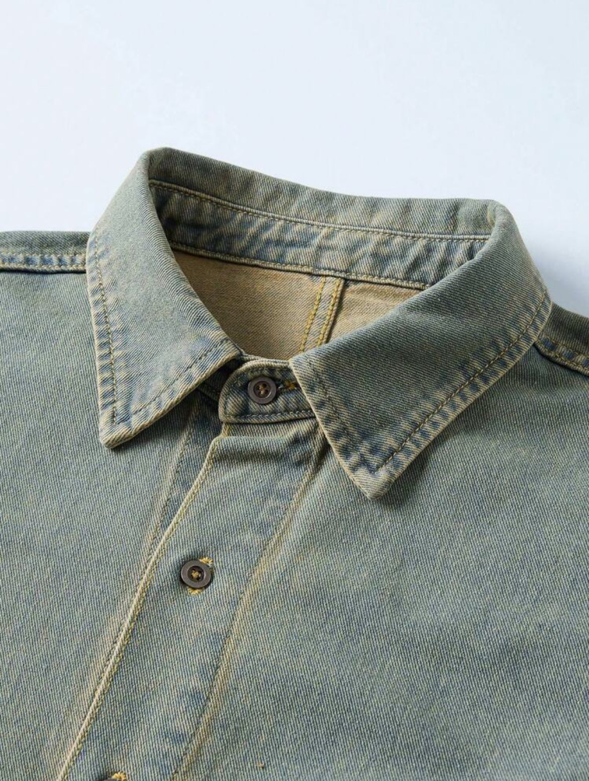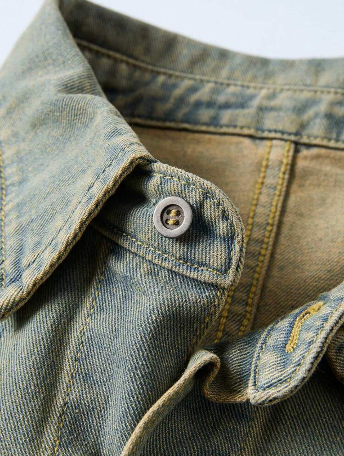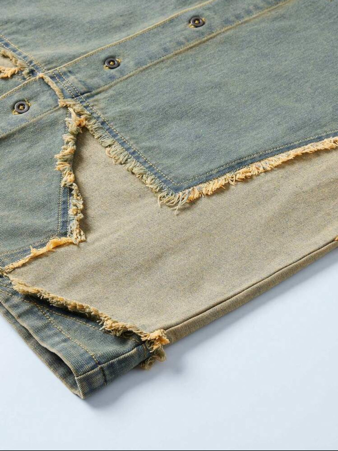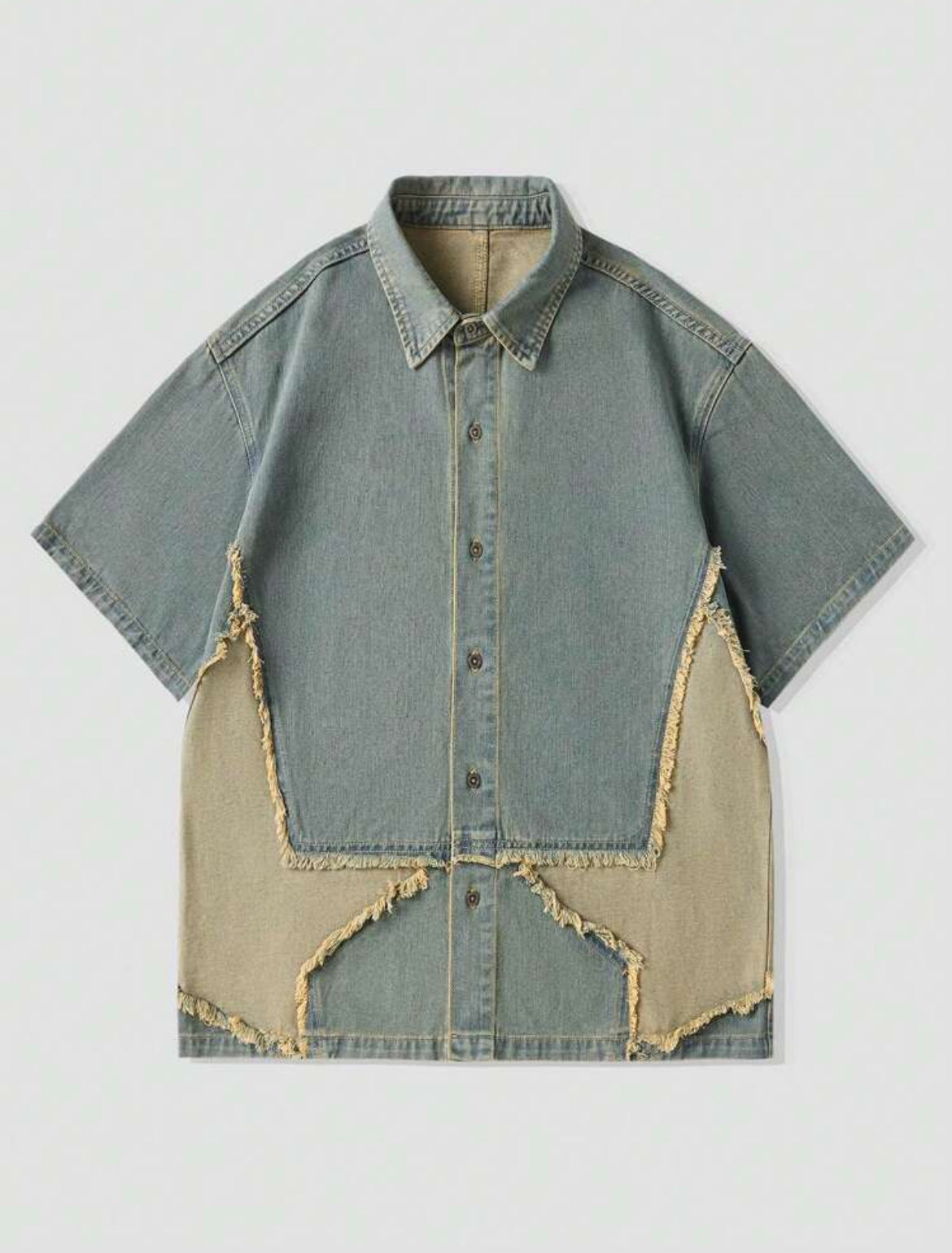 ROMWE Men’s Raw Trim Star Denim Oversized Shirt